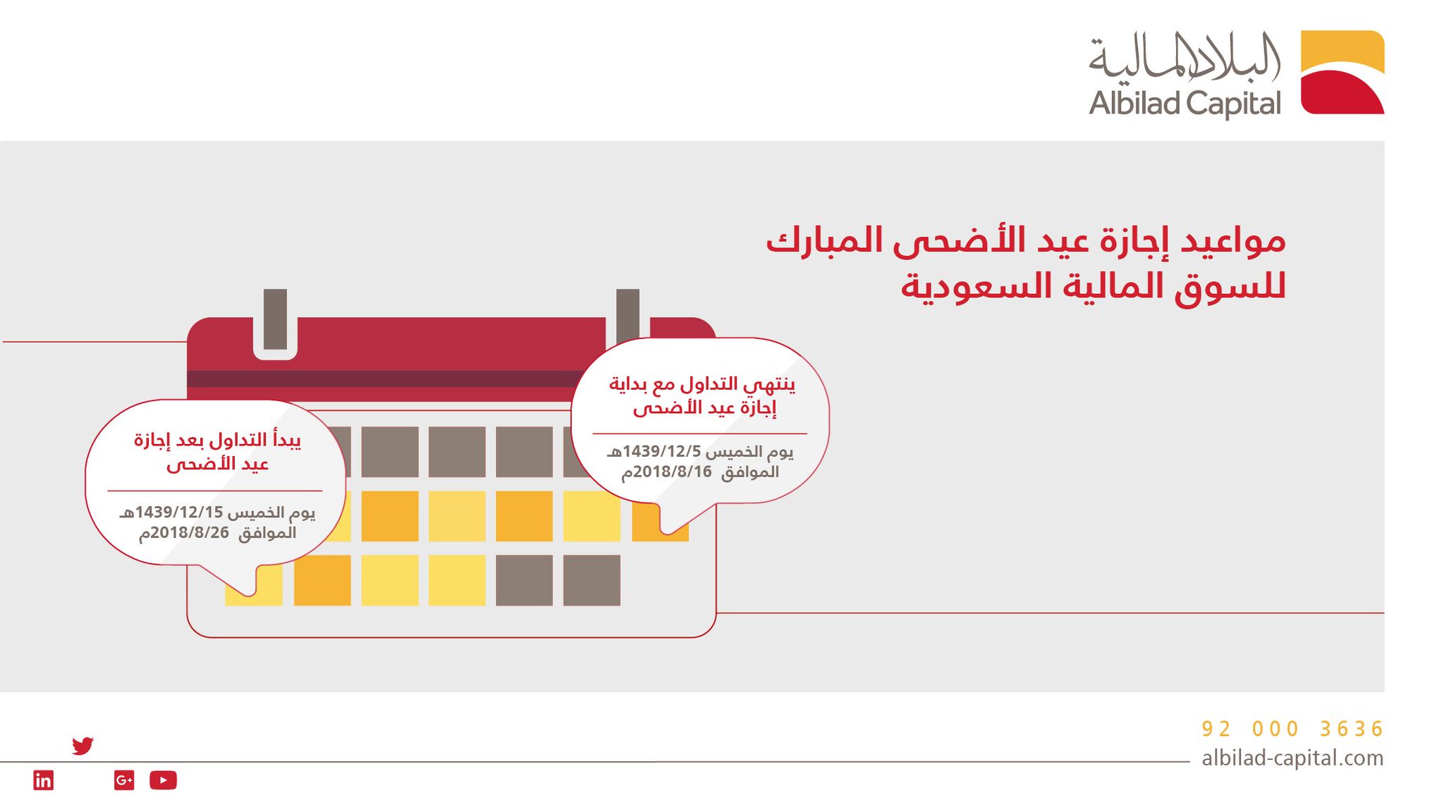 البلاد المالية On Twitter البلاد المالية تهنئكم بقرب حلول عيد الأضحى المبارك وتود إفادتكم بأوقات إغلاق وفتح السوق المالية السعودية تداول خلال إجازة عيد الأضحى Https T Co Pxhx1aioa8